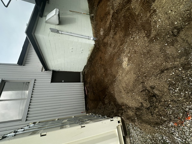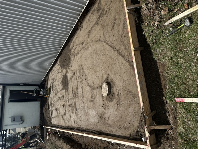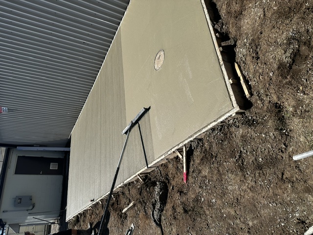 A new concrete pad has been poured to support the exterior chiller unit. This unit will house all major mechanical components, including the condensing system that keeps our ice in peak condition!